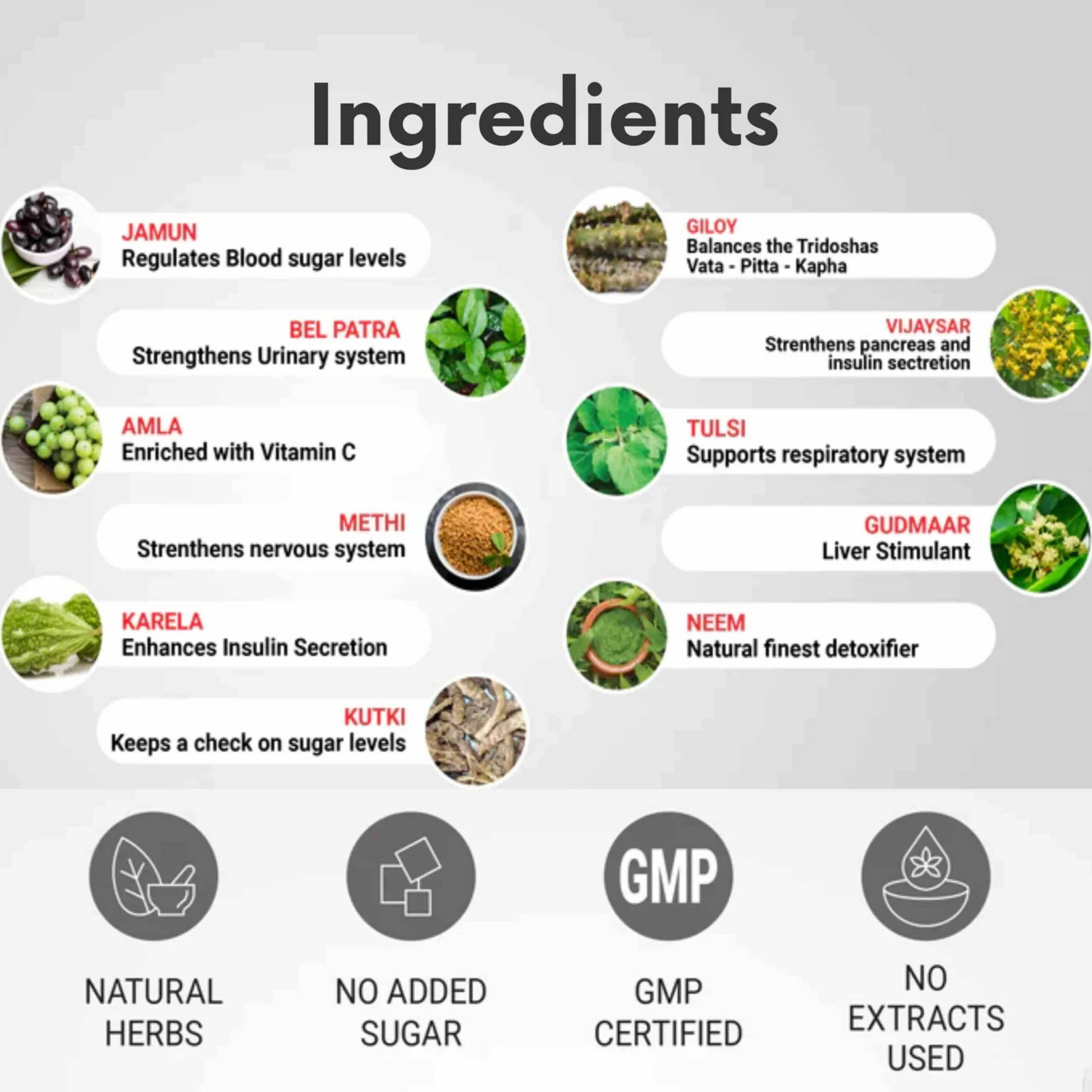 Unlike standalone juices like Karela, Jamun, or Amla, this unique formulation combines the strength of multiple herbs—making it more effective than traditional Ayurvedic remedies for blood sugar management.